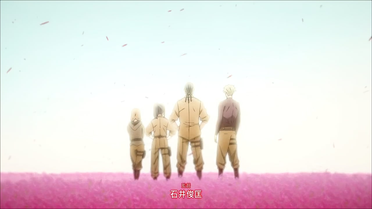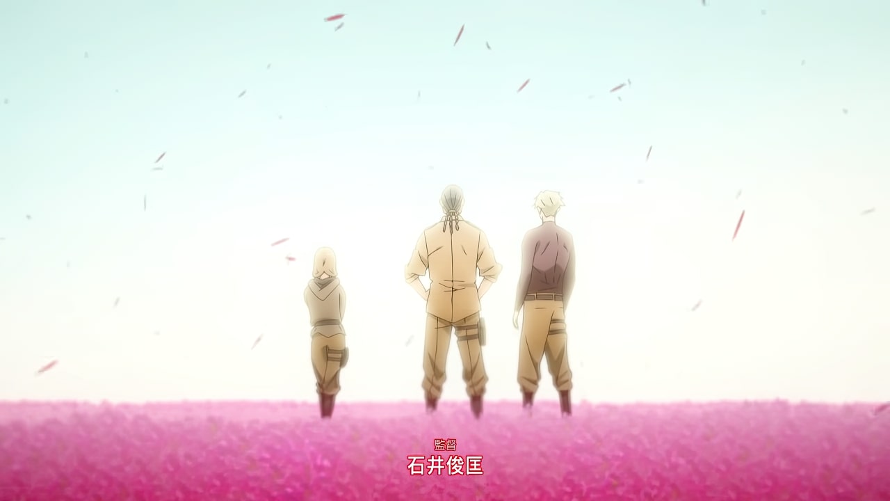 Al final del opening se nos muestra una escena de algunos personajes parados en un campo de flores. La diferencia con los anteriores capítulos es que en esta escena ahora está añadida el personaje que murió en el episodio anterior.