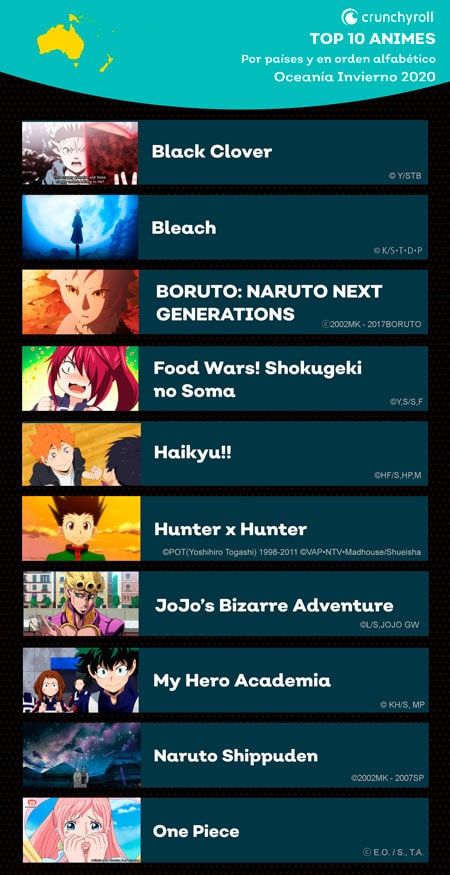 Crunchyroll, la marca mรกs popular de anime del mundo, revelรณ los tรญtulos mรกs vistos y paรญses que mรกs ven anime. Ademรกs, tambiรฉn se compartiรณ informaciรณn sobre las preferencias que tienen paรญses como Mรฉxico, Canadรก o Rusia.