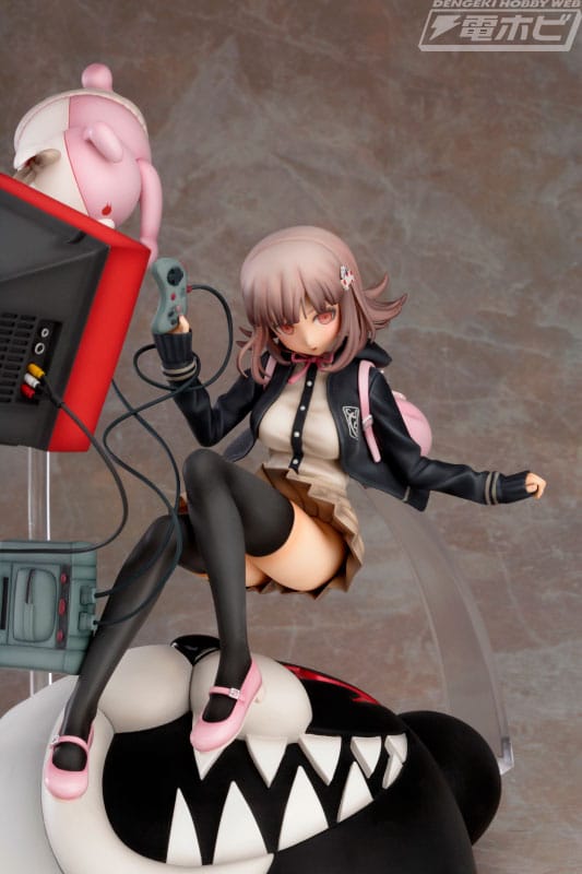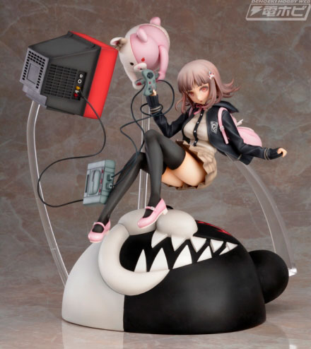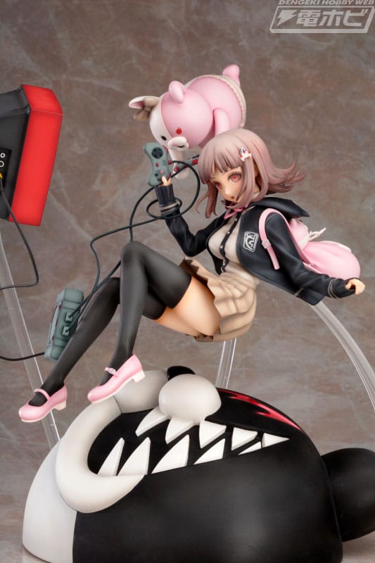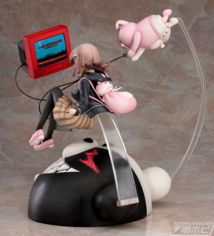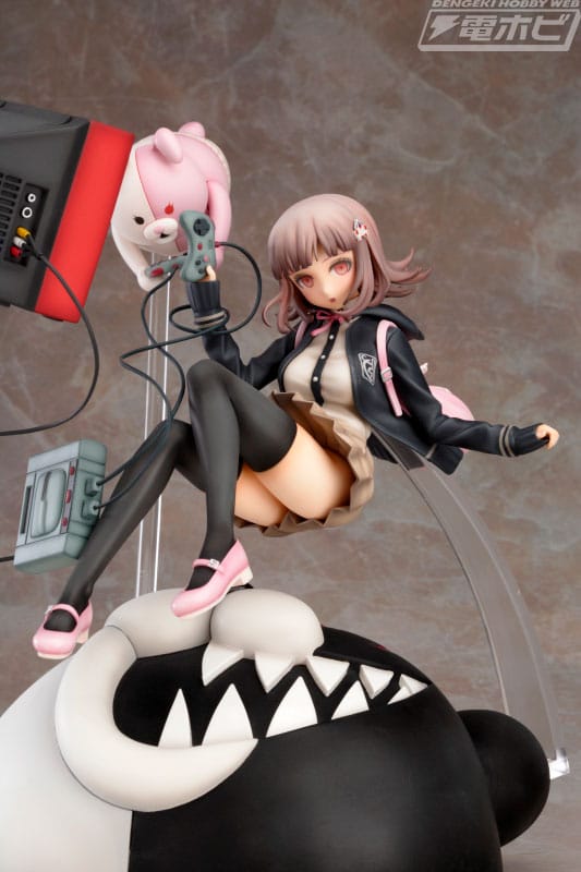 Como en la figura de Kyoko Kirigiri, phatcompany estรก de regreso con esta nueva figura que muestra a Chiaki Nanami jugar videojuegos en compaรฑรญa de Monomi, mientras que flotan encima de Monokuma.