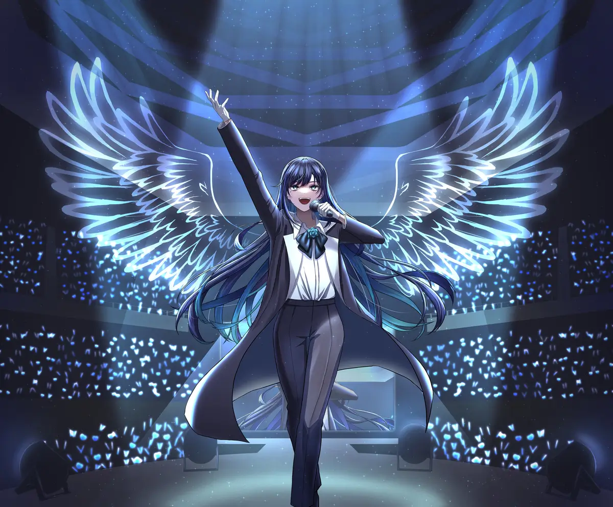 Esta ilustración fue compartida en la red social X, en la cuenta oficial de M, una artista digital que elaboró parte de las ilustraciones oficiales para la gira de “WISH”. La ilustración se centra en promocionar el evento de de la cantante, el cual lleva por nombre “Ado Special Live, Shinzou”. En la imagen observamos a nuestra gran artista en el centro portando un elegante y amplio vestido de color negro con forro azul (un color muy característico de ella).