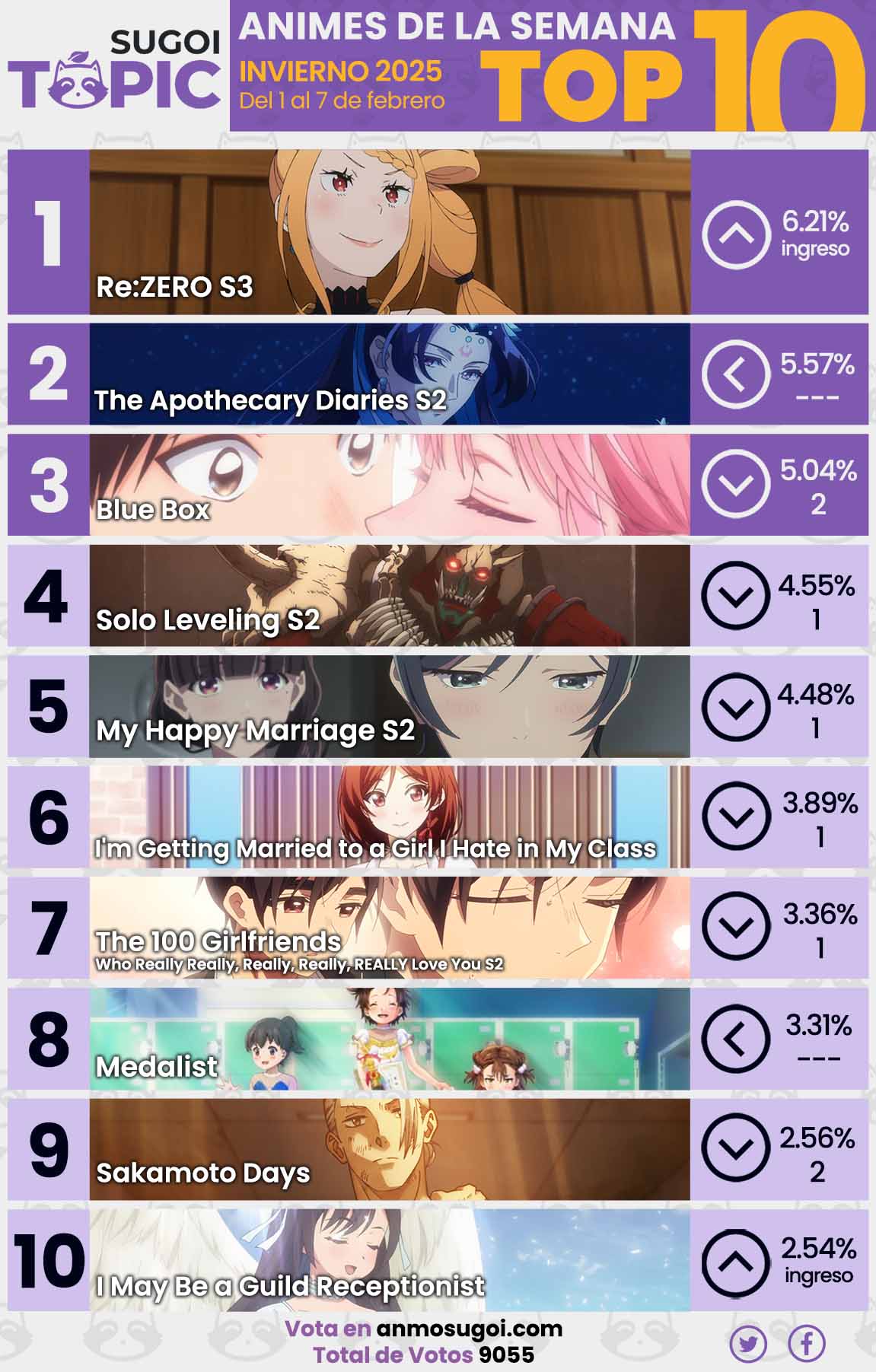 Además, te recomendamos seguir a Sugoi Topic en Facebook y Twitter para estar al pendiente de los nuevos estrenos y las publicaciones de nuestras votaciones.
