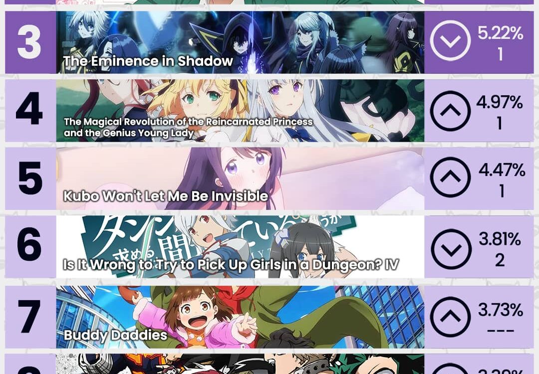 Tenshi-sama, Tomo-chan y The Eminence in Shadow y se ubican en el podio esta semana.