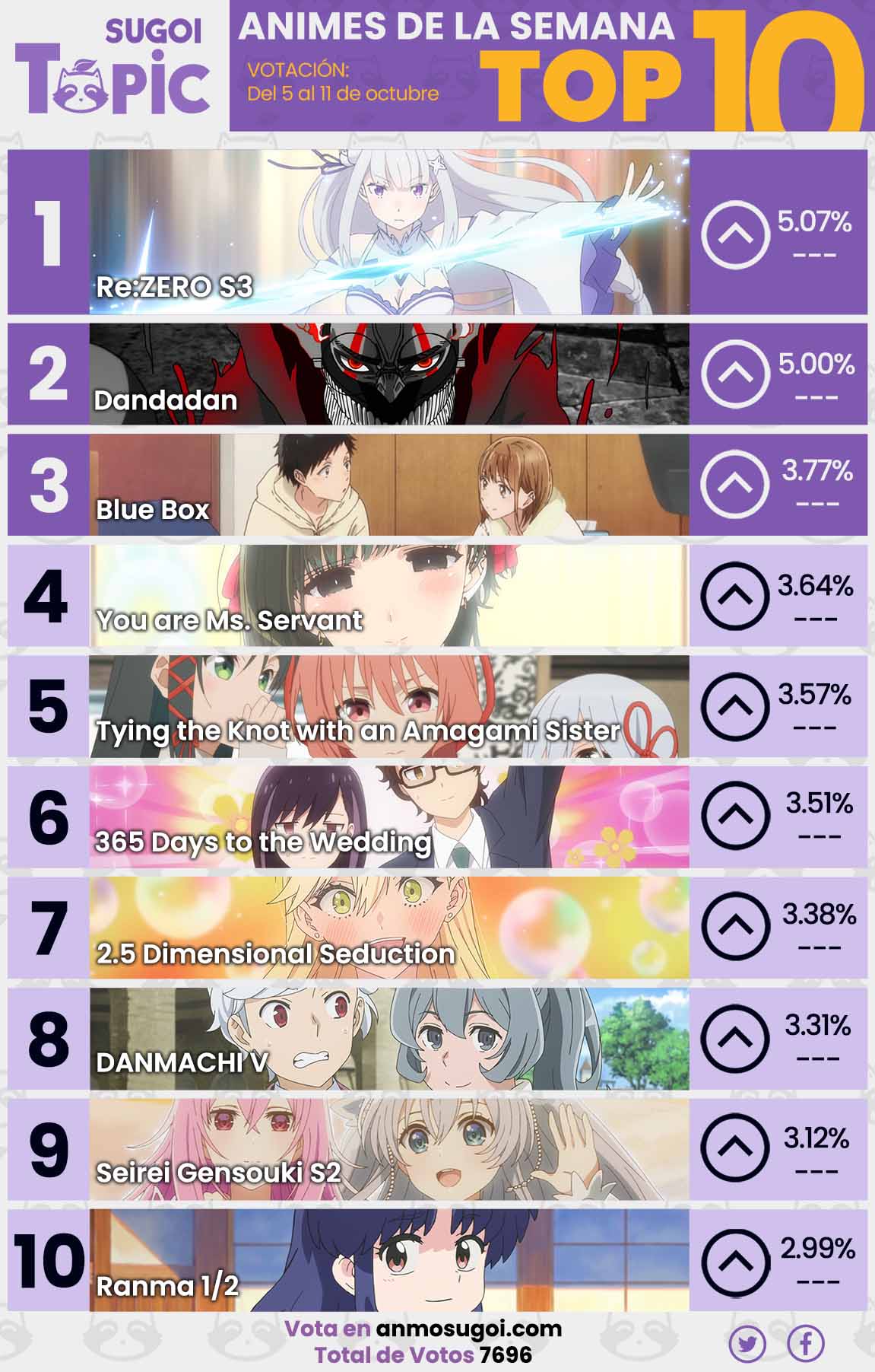 Además, te recomendamos seguir a Sugoi Topic en Facebook y Twitter para estar al pendiente de los nuevos estrenos y las publicaciones de nuestras votaciones.