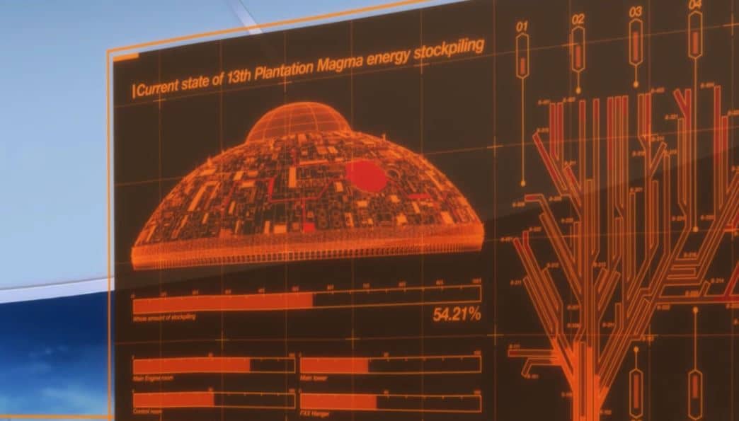 Pero no nos olvidemos que estamos en un anime de mechas. Primero aclarar una creencia errónea del significado de la palabra mecha, no es que mecha signifique exclusivamente robots, sino que se refiere a «mecha»nicals, o mejor dicho, elementos mecánicos. Esto engloba desde los robots hasta elementos electrónicos y mecánicos como armas, mecanismos, herramientas, vehículos o estructuras gigantes automatizadas. ¿Se acuerdan cuando SAO estuvo entre los mejores animes en la categoría mecha de uno de los premios que hacen en Japón tipo premios Oscar, por su arco Gun Gale Online? Quizás ahora sepan por que.