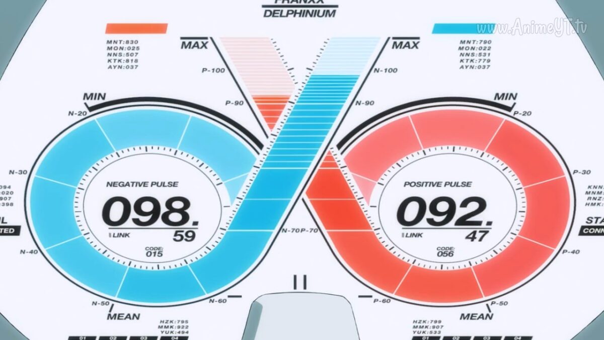 Ahora vayamos al interior de los FranXX, el sistema de doble usuario. El sistema de doble usuario permite repartir la carga y control del robot y para esto los usuarios deben estar sincronizados y confiar el uno en el otro, haciendo una armoniosa conexión de usuario-maquina para su control. Si uno de ellos desconfía, se desconcentra o tiene alguna actitud o acto similar, la sincronización cae y el FranXX se desactiva, como pudimos ver en la pelea de prueba del capítulo 2.