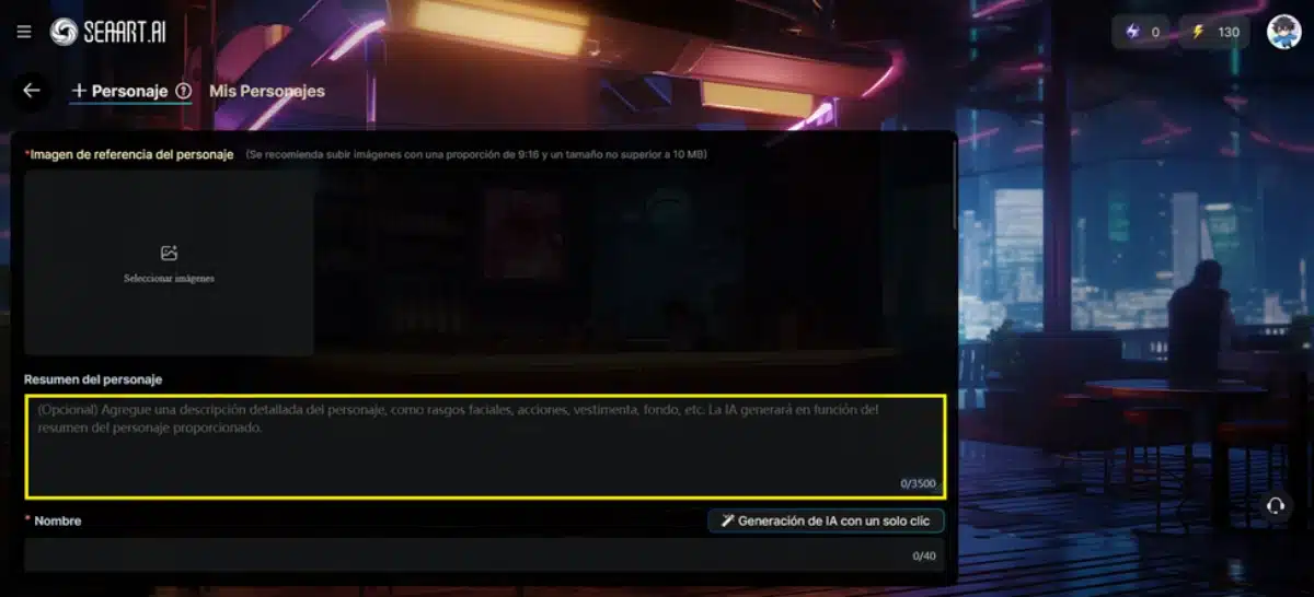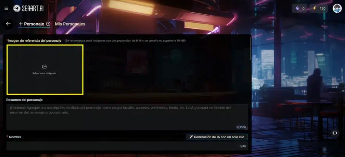 Al pulsarla accederás al creador de imágenes de IA de SeaArt, que no es solo para crear imágenes de anime, sino que se puede usar para mucho más. Lo que nos ocupa es la creación de un personaje de anime, sin embargo, así que vamos a elegir las opciones correctas para eso.