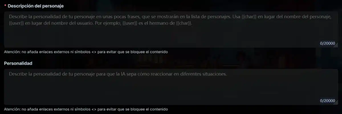 Las siguientes dos secciones son críticas para la personalidad de tu personaje de anime, y por eso tienes un límite de 20.000 caracteres para cada una. En ambas es importante que desarrolles su personalidad, pero la descripción es más contextual –su historia, su rol en el mundo, quién es–, mientras que la segunda es más psicológica y emocional: cómo piensa, cómo reacciona, que siente. ¡Expláyate y asegúrate de crear un personaje con una mente y unas emociones memorables!