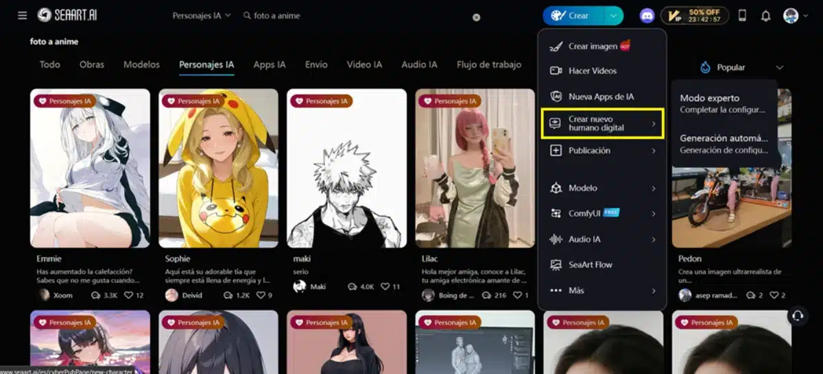 Seguro que todos hemos fantaseado con la idea de conversar con nuestros personajes anime favoritos, y lo mejor es que ahora podemos hacerlo gracias a la IA. Y no se trata de hablar con ChatGPT y pedirle que interprete a Kira o a Asuka –aunque también puedes hacerlo–. Hablamos de una nueva plataforma de IA llamada SeaArt AI, que cuenta con múltiples herramientas IA integradas para que hagas realidad tus sueños más fácilmente.