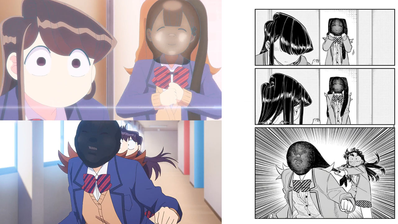 En los dos últimos episodios de la temporada se sumaron 6 misiones en el anime que representaron 9 capítulos del manga los cuales no sufrieron ningún tipo de desorden, sino que continuaron la misma línea de la obra original. Por otro lado sí se omitieron algunos capítulos como el 123 y el 125, siendo este último el cual me hubiese encantado verlo adaptado al anime ya que es una pequeña historia en la cual se muestra como los papás de Komi-san se conocieron, mostrando a una Niimi Shoko (mamá) rebelde de 17 años y a su compañero Komi Yoshi (papá). Pero es entendible la omisión ya que habría roto un poco con la coherencia del último episodio. Aun así considero la posibilidad de ser adaptado en caso de una S3.