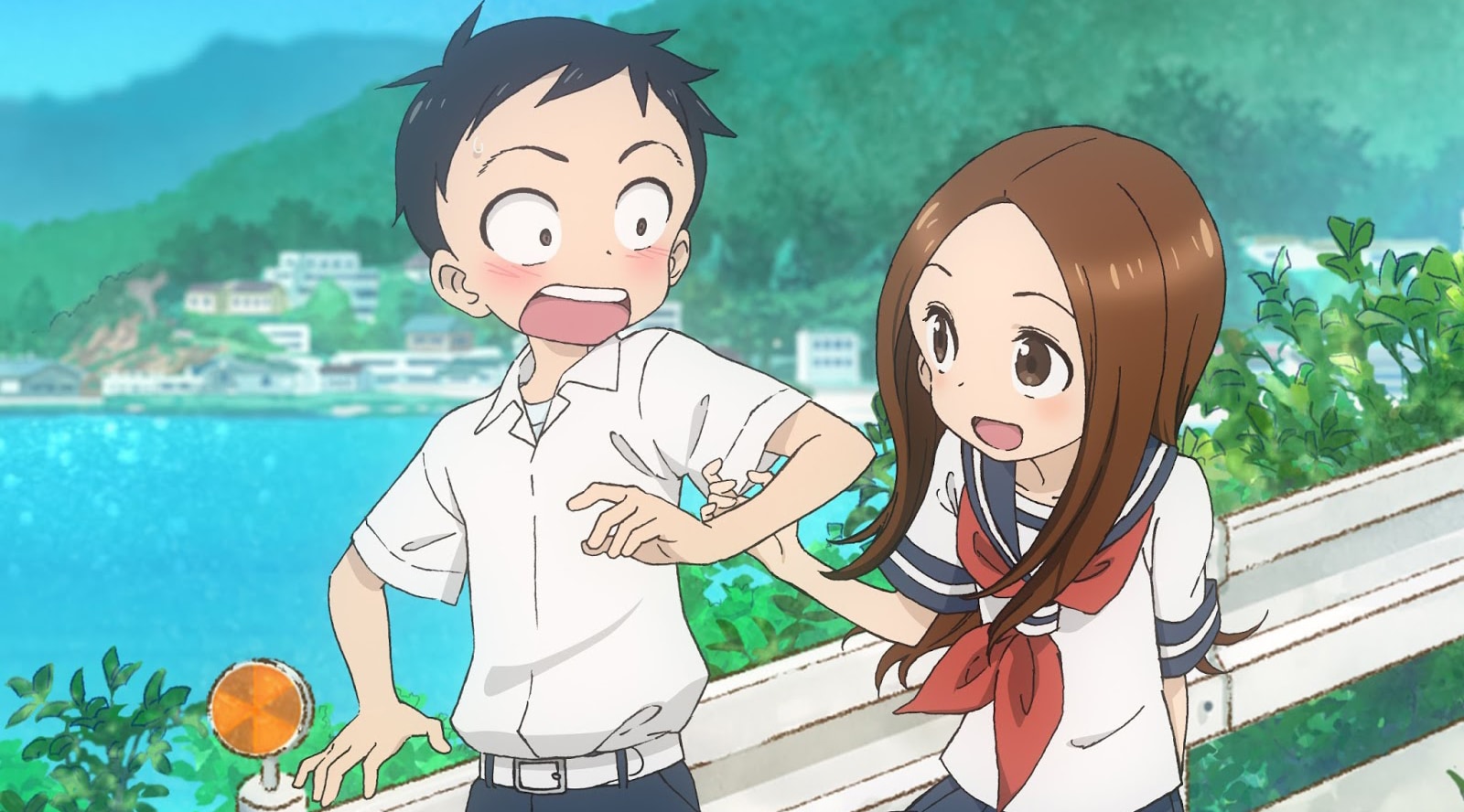 Lo cierto es que Takagi san está enamorada de Nishikata y tal parece que su maquiavélicas bromas son intentos de mantener la atención de Nishikata fija en ella, que por cierto funciona muy bien, por su lado, Nishikata también parece estar enamorado de Takagi aunque está más enfrascado en las bromas que le juega como para percatarse o admitir lo que siente por ella. Y no es para menos enfocarte en las bromas cuando tu rival es Takagi-san, esta pequeña niña que rivaliza con Sakura en cuestión de frentes, es astuta a más no poder, o al menos lo es más que Nishikata, en todo momento está un paso por delante de él y en no más de una ocasión le ha dado pistas de sus sentimientos que tristemente él toma como una broma más. A pesar de todo Takagi es una tierna niña que es amable con todos, incluyendo a Nishikata y ambos mantienen una buena relación pues incluso van a casa juntos todos los días.