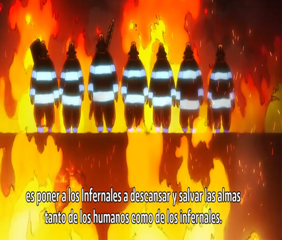 ¿El trabajo del escuadrón especial Fire Force?, vencer a los infernales y encontrar la causa de la combustión espontánea.