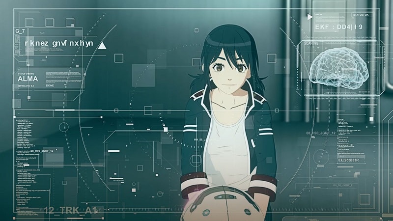Enseguida llegamos hasta el año 2030, en donde observamos a dos chicas que intentan escapar de un barco con un maletín en sus manos. Una de ellas es una policía, llamada Minami Uezono; la otra, una androide llamada Alma. Además, el maletín que tienen en sus manos parece ser un objeto demasiado valioso, por lo que tienen mucha resistencia que impide su escape.