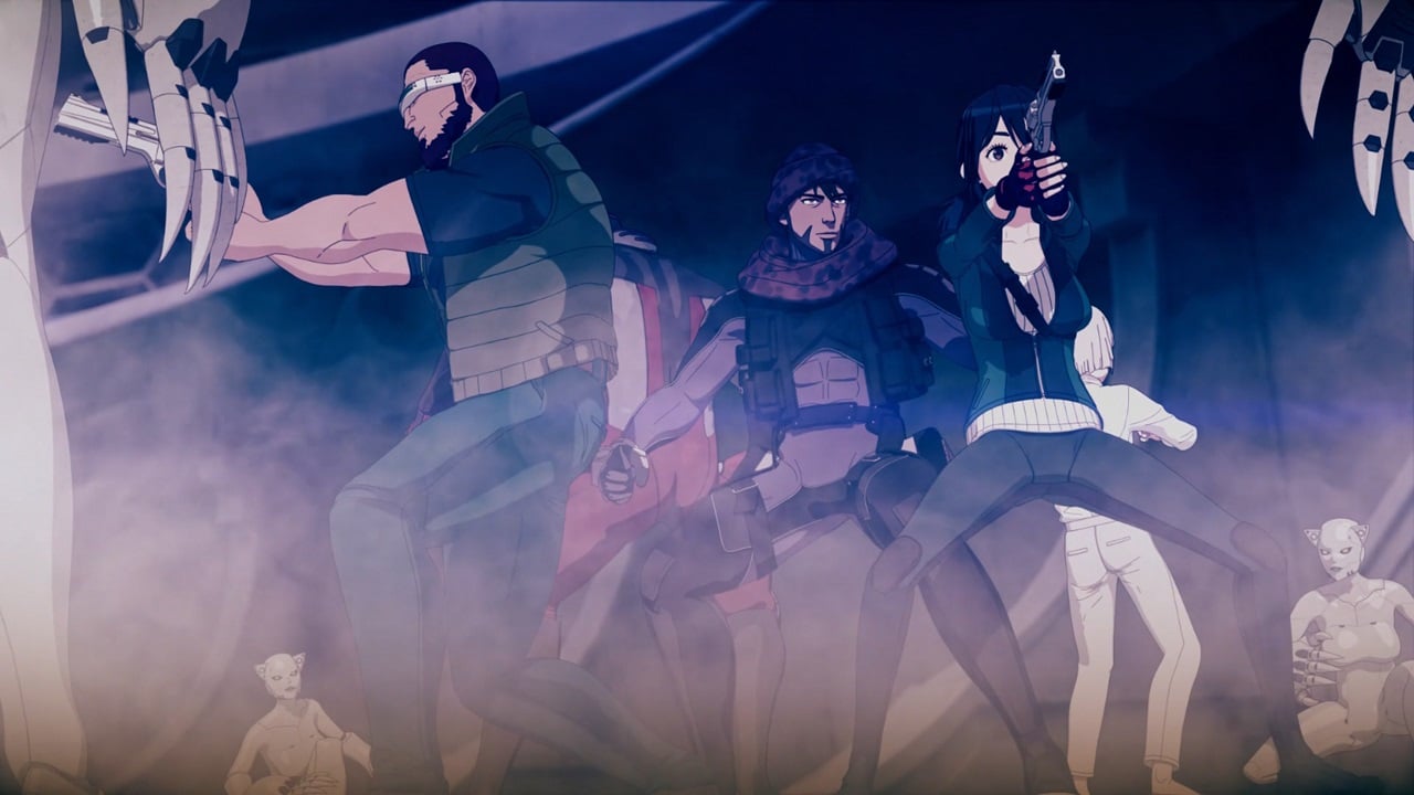 Podría decir que en este capítulo intentan mantener la misma narrativa del capítulo anterior, agregando además algunas escenas de acción para equilibrar con las escenas de diálogos. Tristemente sólo se queda en eso, un intento, y lo único que vemos es un montón de escenas con diálogos que a veces aportan a la trama, pero otras veces sólo parecen relleno. Y las escenas de acción… pues es EX-ARM, ya sabemos a que le tiran.