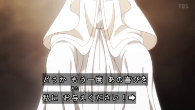 los pongo en situación: Nosotros somos devotos de la waifu de AnmoSugoi, le rezamos y le damos ofrendas, ya sea en dinero o cosas materiales pero un día sorpresivamente se revela que en realidad la Waifu nunca existió y que todas las ofrendas que le dimos terminaron en las manos de alguien que jugo con la mente de las personas miles de años, es muy probable que tengamos un sentimiento de impotencia o de duda, esa sensación es la misma que va a experimentar Iris cuando todo salga a la luz. Personalmente me da un poco de lastima ella porque la gente que vivió con ella en la iglesia murió por culpa de la misma gente que ha manipulado la historia de la religión y yo creo que cuando todo salga a la luz Iris va a entrar en un plano de personaje bastante turbio.