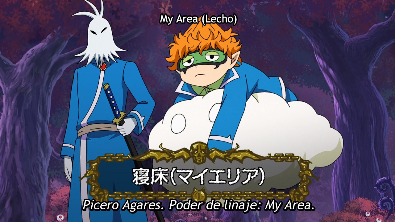 - Agares Picero y Garp Goemon: Garp, el espadachรญn, ayuda a cortar las plantas mientras que Agares controla el suelo con su poder ยซMy Areaยป. Asรญ consiguen las firmas de los profesores del batora a cargo de la seรฑora Susie.