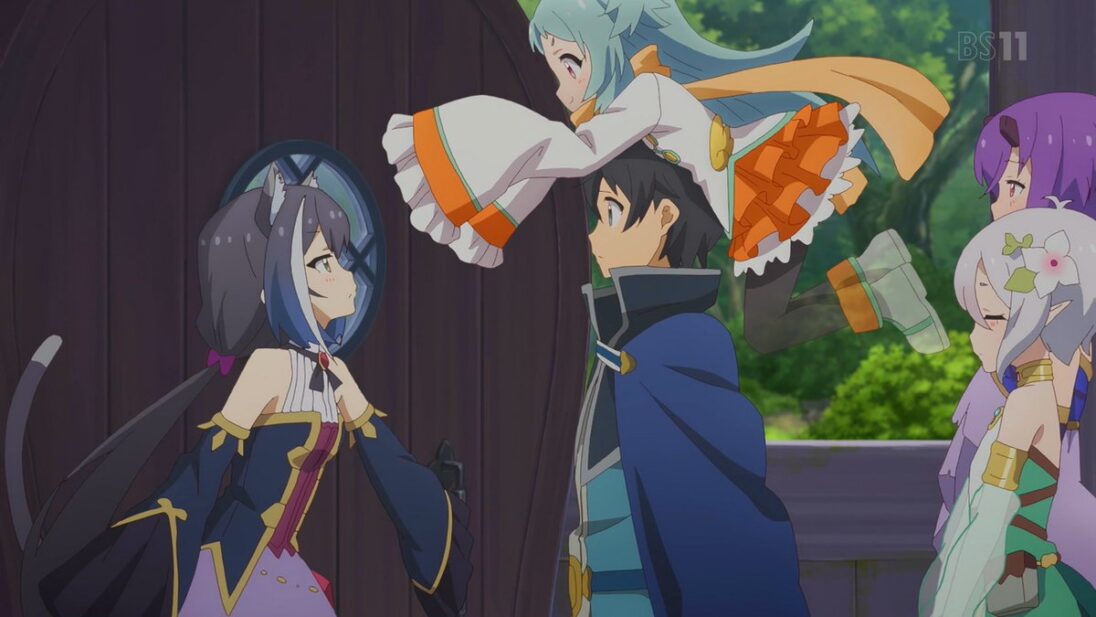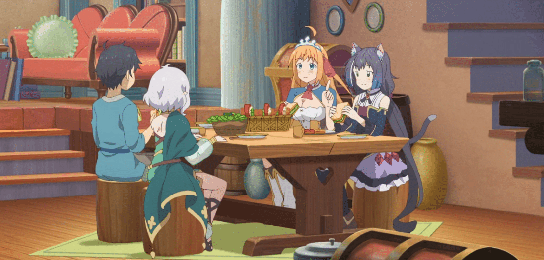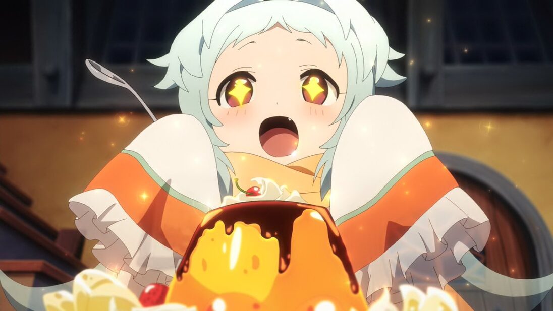 El anime nos muestra a Kyaru quien está echada en el sofá de la casa (donde curiosamente está leyendo un libro para aprender a nadar), y se percata de que todos se están tardando demasiado en volver, aunque luego tocan la puerta del gremio y… ¡sorpresa!, Yukki junto a Kokkoro llegan a su hogar aunque con un invitado bastante peculiar, esto casi mata del susto a Kyaru quien no logra entender el “cómo llegan con un fantasma si solo iban a entregar una canasta”, Kokkoro logra calmar la situación y termina explicándole todo lo sucedido a la miedosa maga. El motivo del arrivo de Miyako a la casa del gremio gourmet, se debe a que obligará a los tres desafortunado aventureros a prepararle un pudín que este a la altura de su paladar o si no simplemente los convertirá en uno y se los comerá.