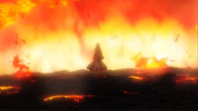 La escena en la que Sorao ve a Satsuki en medio de un paisaje caotico es muy buena, se nota el detalle y calidad de dibujo que los artistas ponen en el anime. Esto aumenta el hype del espectador por ver como se desarrollará la historia en capítulos futuros. Los detalles puestos en los fondos siguen manteniendo la calidad vista anteriormente pero la animación no tanto.