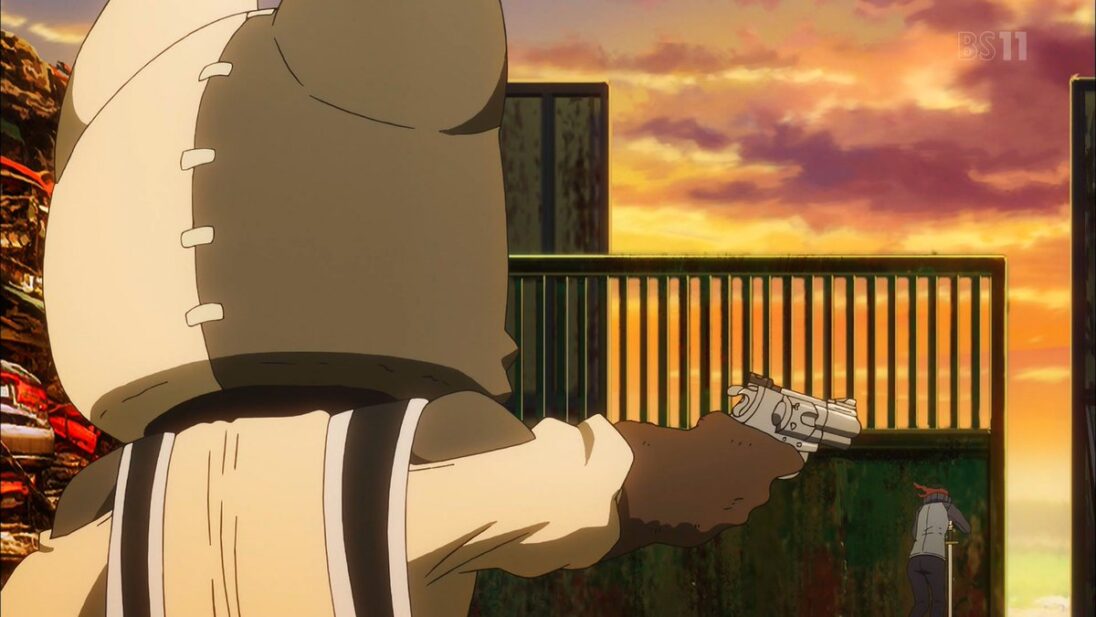 También se ve cuando decide asesinar enemigo sobreviviente. Es verdad que Shuichi hasta estas alturas de Gleipnir, había tenido un desarrollo muy lento, sin embargo me alegra por fin ver una muestra de su evolución.