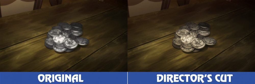 49:20 – Al final del episodio, justo en el momento donde el ojo de Emilia refleja el rostro de Subaru se aprecian los personajes al fondo con movimiento, pero en esta nueva versión se mantienen estáticos.
