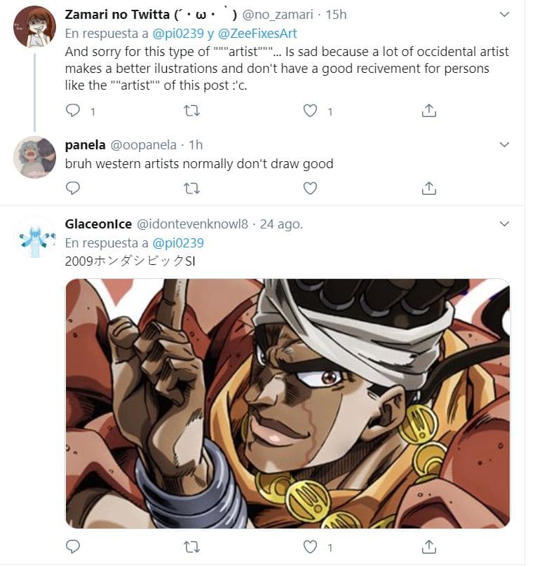 El comentario de @pi0239 ha tenido 974 retweets y comentarios, destacando por tener opiniones de personas occidentales que se han disculpado por los ilustradores occidentales que modifican a los personajes japoneses, mientras que otros se han reído del illustrator.