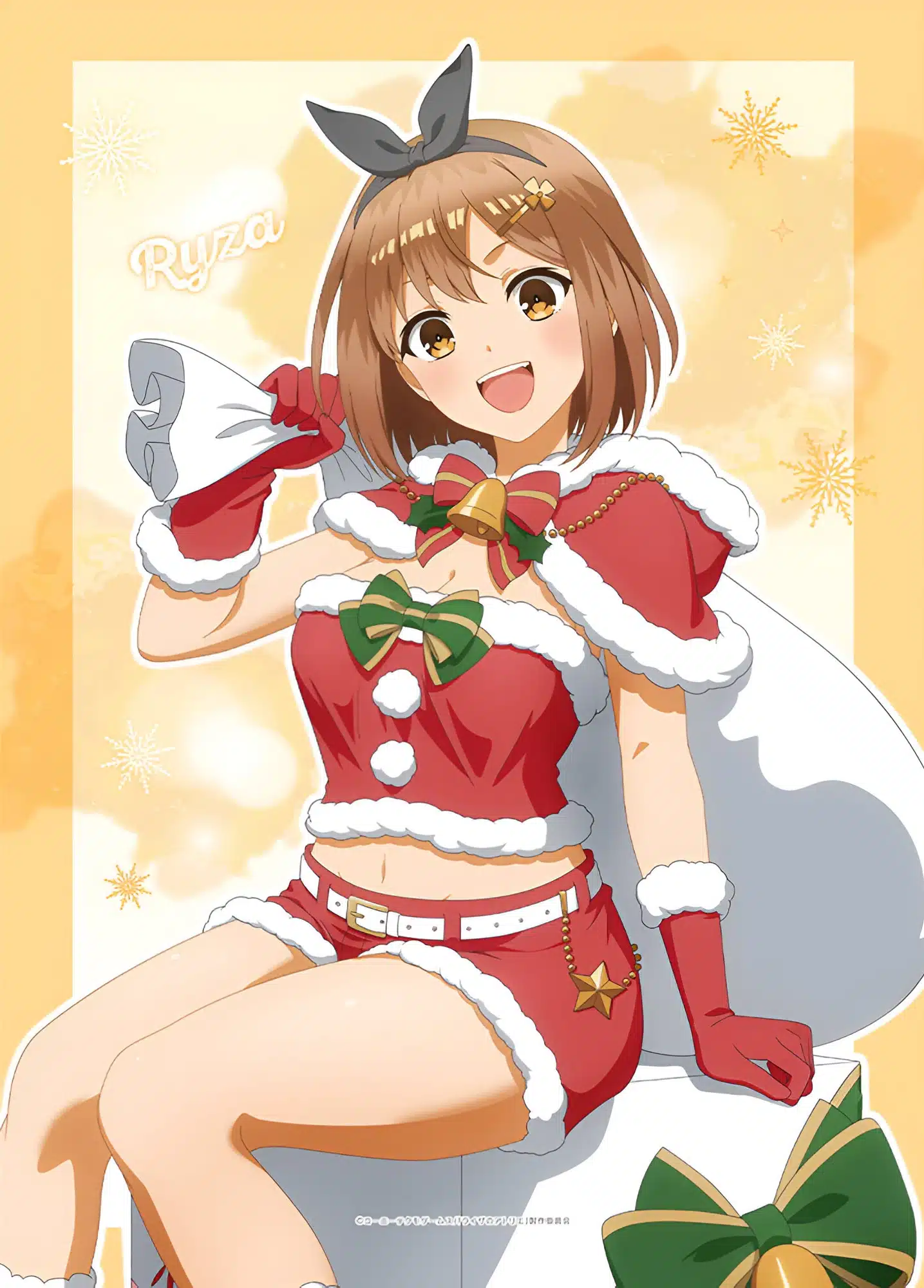 Este contenido presenta una ilustración protagonizada por Ryza, quien luce un encantador traje navideño. En esta imagen, Reisalin viste un atuendo inspirado en Santa Claus, diseñado con algunas modificaciones para adaptarse a sus curvas y resaltar su atractivo físico, aportando un toque único y cautivador a esta versión del personaje.