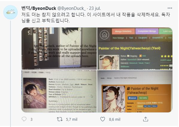 โHola, soy Byeonduck, el escritor del webtoon ‘Painter of the Night’, estoy luchando contra un sitio llamado Mangago. Por favor, escriba un artรญculo sobre mi caso โ.