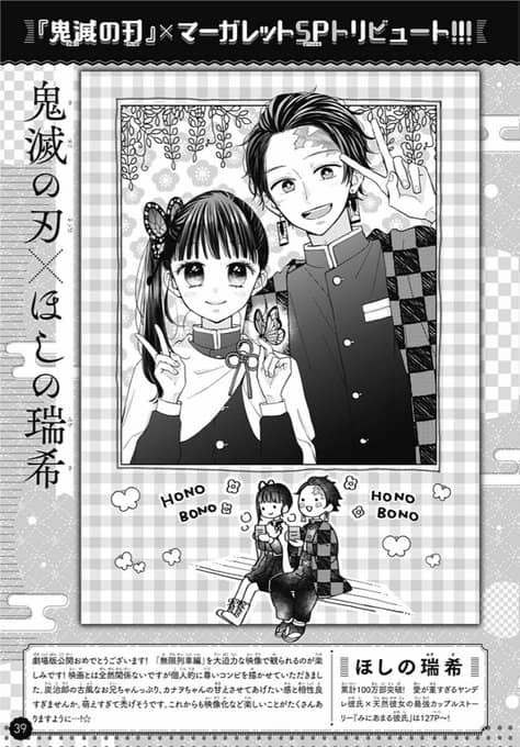 Seis mangakas de mangas shoujo se reunieron en la edición 21 de la revista Margaret para dibujar diferentes ilustraciones como tributo para el manga Kimetsu no Yaiba.