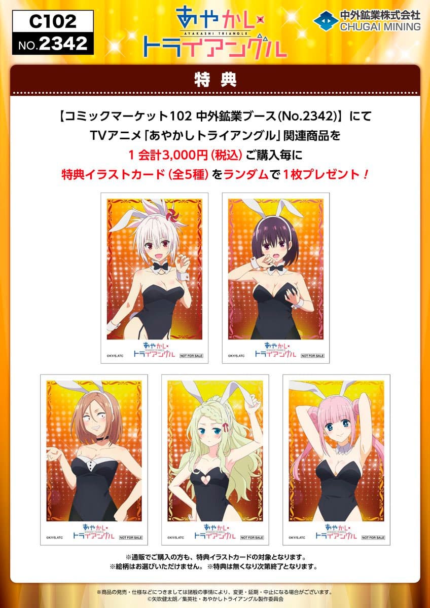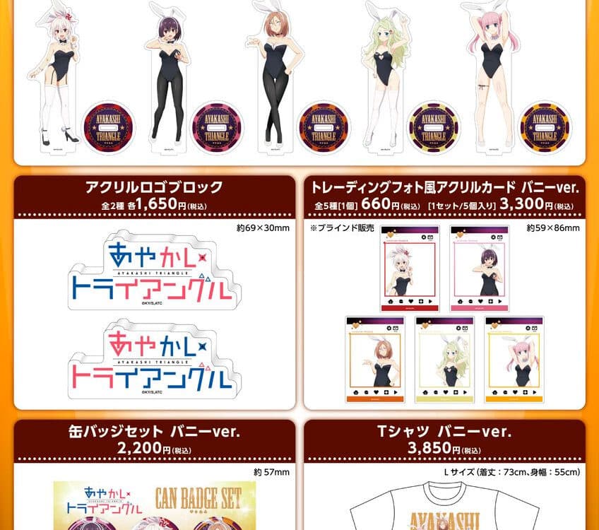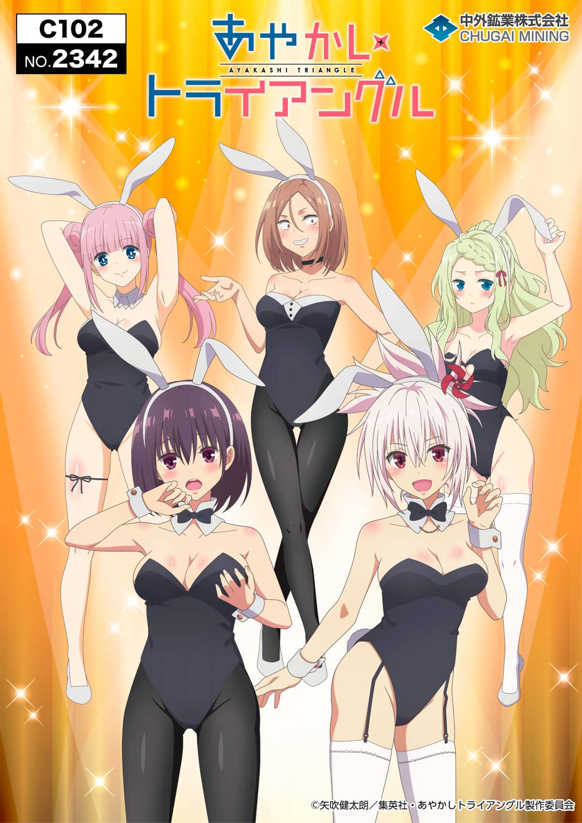 Con el objetivo de promocionar la emisiรณn semanal de la adaptaciรณn al anime del manga ecchi ยซAyakashi Triangleยซ, la compaรฑia Chugai Mining presentรณ una fantรกstica colaboraciรณn con la franquicia, que estarรก protagonizada por los personajes: Matsuri Kazamaki y Suzu Kanade, Yayoi Toba, Lucy Tsukioka y Reo Kourogi. Adicionalmente, se ha presentado una atractiva imagen promocional para esta interesante colaboraciรณn y se destaca por presentar a las waifus de la serie como unas atractivas conejitas.