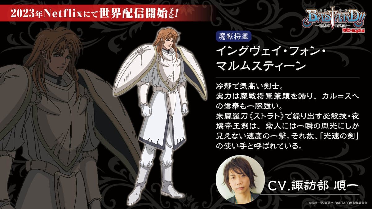El anime BASTARD!! Heavy Metal, Dark Fantasy – Requiem of Hell Arc esta programado para emitirse en el transcurso de este mismo año en Japón y que llegará exclusivamente a la plataforma streaming Netflix de manera global. Contara con el regreso del elenco de voz de la primera entrega, donde se suma cuatro nuevos actores quienes prestaran su voz para esta nueva temporada.