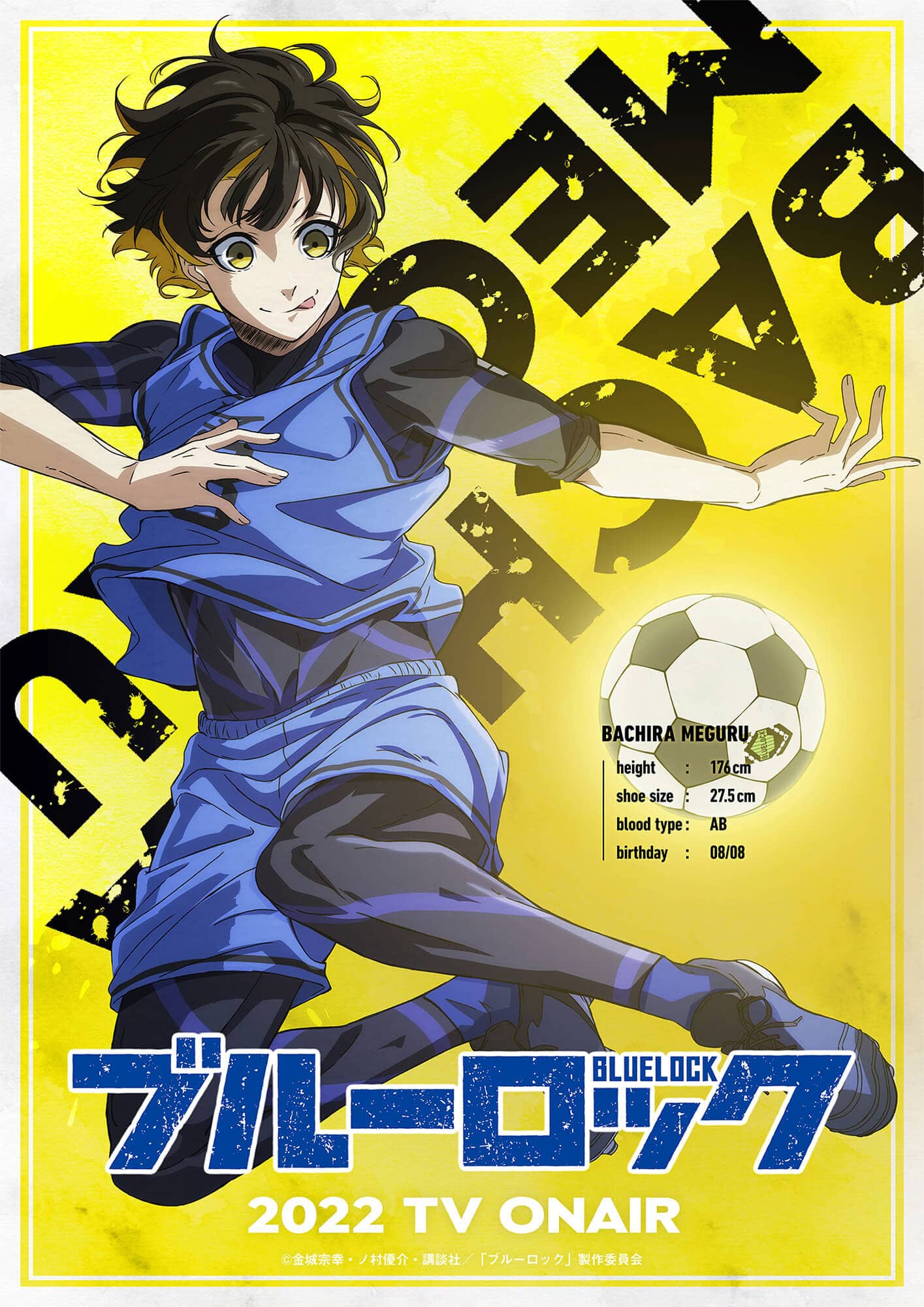 Con motivo de promocionar el próximo estreno de la serie, el Twitter oficial para la adaptación al anime del manga «Blue Lock» se publicó una imagen visual protagonizada por Bachira Meguru en donde nos muestra algunos datos personales del personaje Recordemos que el anime se estrenará en el transcurso del año 2022.