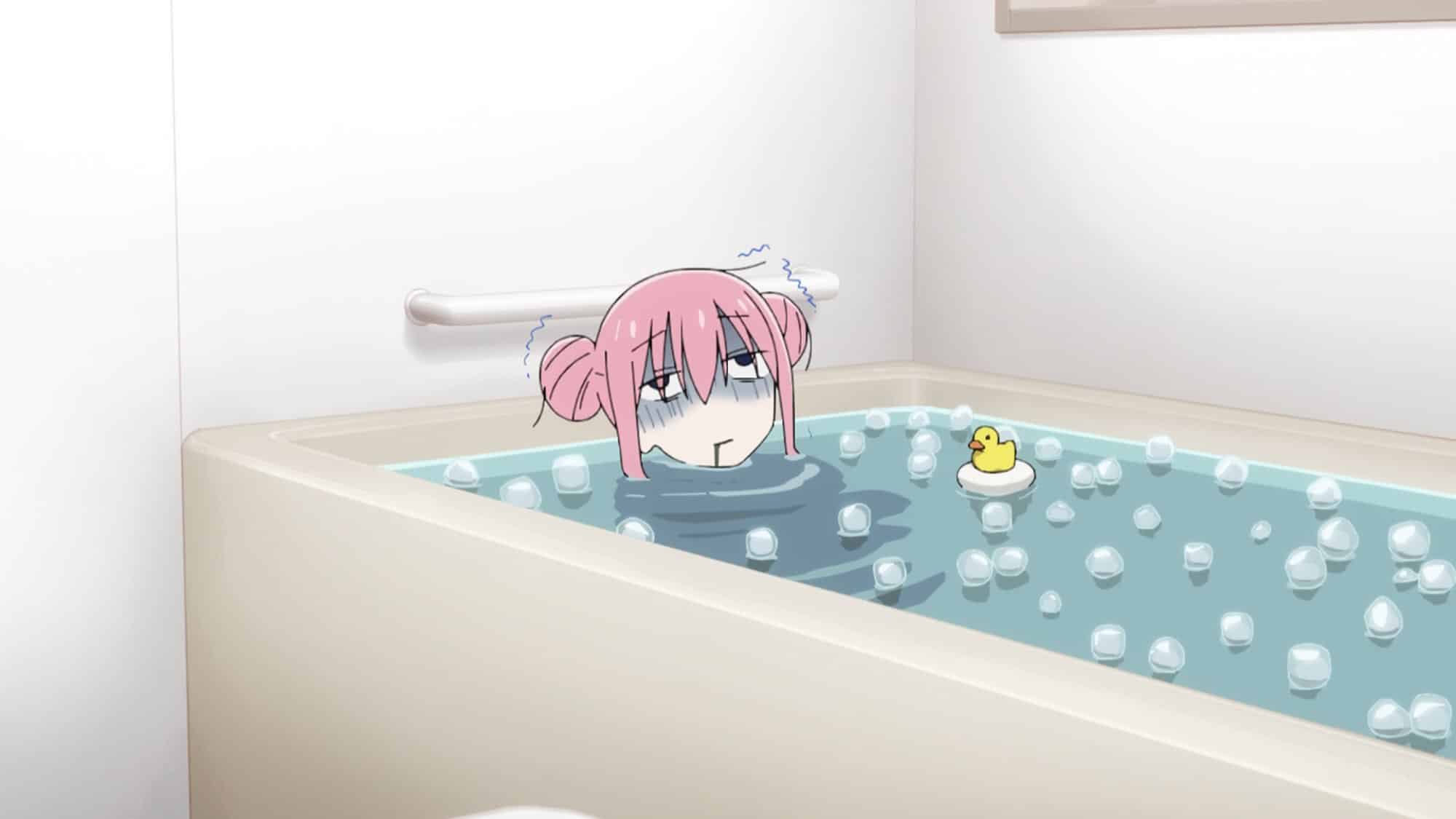 En el caso de la adaptación al anime se puede ver a Hitori entrar a la tina, pero ataviada con un traje de baño negro, en la animación también se nota la diferencia en el dibujo, pues tampoco se puede apreciar la silueta del personaje, motivo por el que reclamaron los fanáticos.
