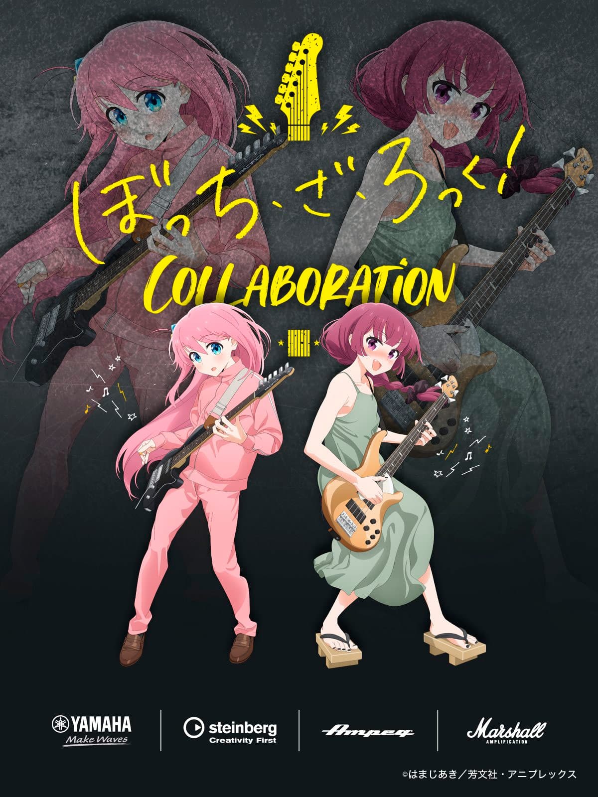 Hay que mencionar que la colaboraciรณn entre el anime Bocchi the Rock! y la compaรฑia japonesa ยซYamahaยป consistirรก en la promociรณn de diferentes instrumentos musicales como lo son, modelos de guitarras (tanto elรฉctricas como tambiรฉn bajos elรฉctricos), modelos de amplificadores y algunos elementos musicales mรกs.