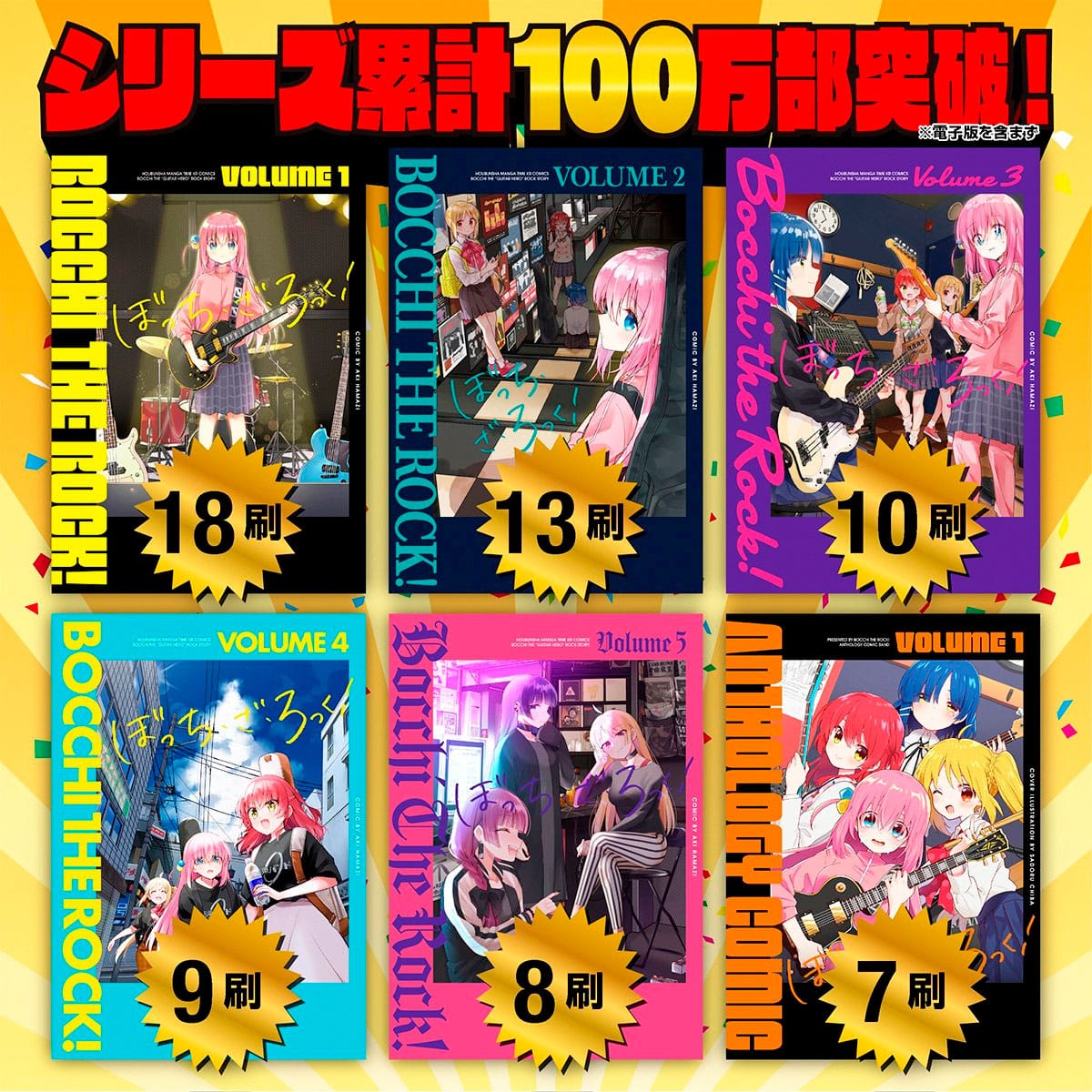 Pero eso no es todo, ya que en los medios oficiales de la revista Manga Time Kirara (revista donde se publica Bocchi the Rock!) reportó que la obra superó el millón de copias en circulación. Esta cifra corresponde a las copias de todos los volúmenes recopilatorios del manga que se han publicado en la actualidad y se agradeció todo el apoyo del público lector, incluso cuando la adaptación al anime de Bocchi the Rock! finalizó su emisión.