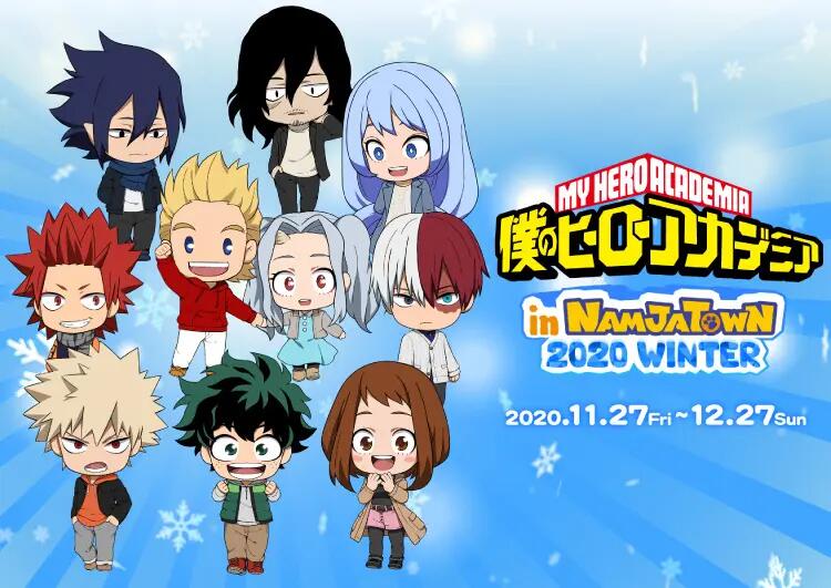 La franquicia Boku no Hero Academiaha decidido celebrar navidad con un evento especial que se titularรก ยซMy Hero Academia in Namjatown 2020 WINTERยซ. Dicho evento se realizarรก del 27 de noviembre al 27 de diciembre y para conmemorar el anuncio se liberรณ una imagen con diseรฑos chibi de los protagonistas.