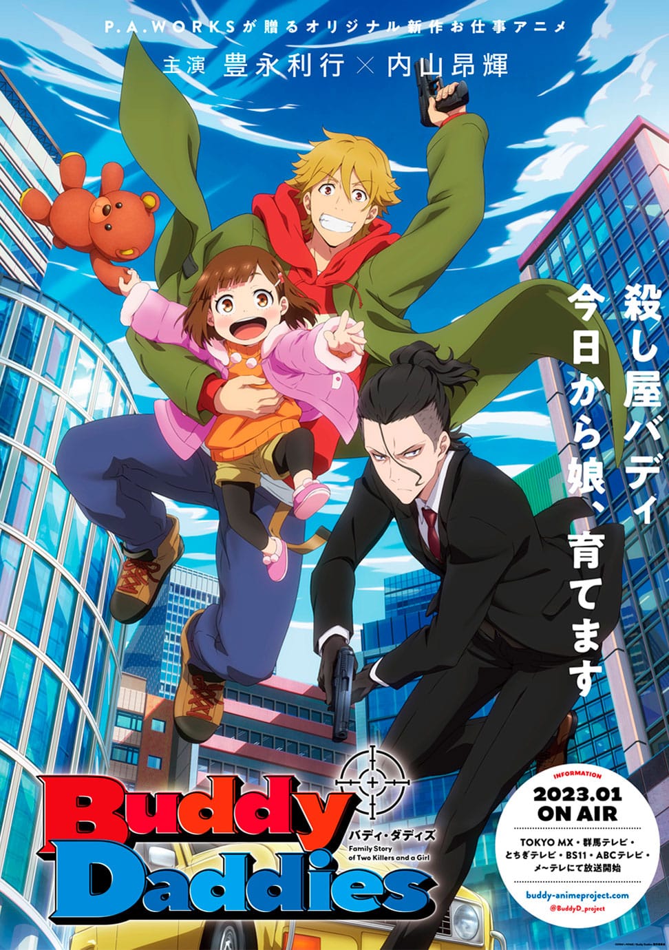 En el sitio web oficial para el anime original de la desarrolladora Nitroplus y el estudio de animación P.A. Works, titulado Buddy Daddies, se ha presentado un vídeo promocional en el que se nos muestra una vez más las voces de los protagonistas de la serie. Queda señalar que el anime está programado para estrenarse en Japón en el transcurso del mes de enero del año 2023.