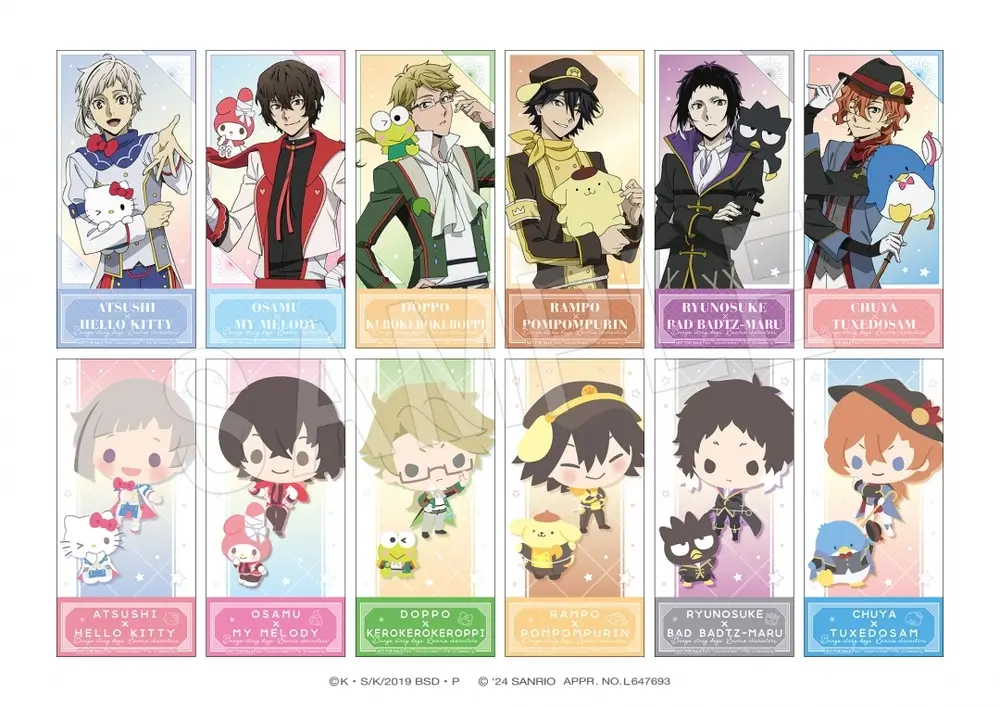 El hermoso de Atsushi está cargando a la icónica Hello Kitty, el guapo de Dazai comparte cuadro con la tierna My Melody, el inteligente de Kuninida carga en un hombro el simpático Keroppi. El inteligente de Ranpo cargar al Pompurin, el intimidante Akutagawa trae en un hombro al serio Badtz-maru y finalmente el impulsivo Chuuya comparte cuadro con Tuxedo Sam.