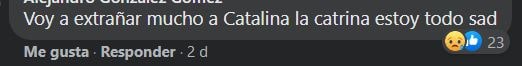 La comunidad se unió en los comentarios para expresar su opinión sobre que ya no verán a Catalina, aunque algunos también aprovecharon para compartir profanaciones.