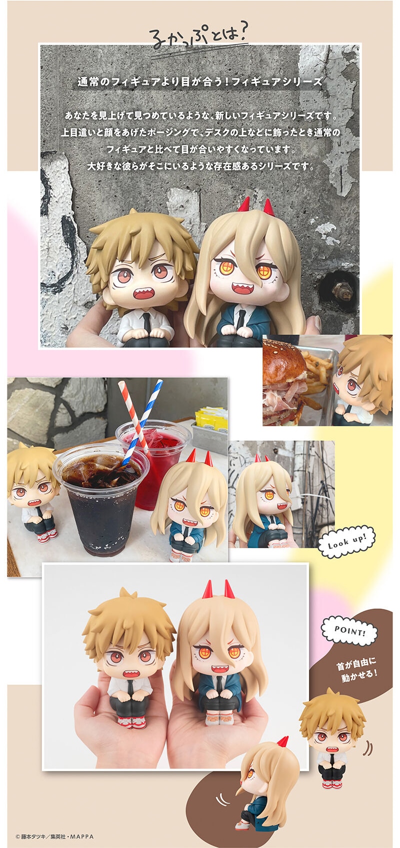 La lรญnea Rukappu (Look Up Series) de Megahouse, ha revelado que el icรณnico dรบo de devil hunters de la popular franquicia Chainsaw Man, tendrรกn unas adorables figuras que serรกn lanzadas a principios del aรฑo que viene, pero que se pueden reservar desde el 13 de octubre en algunos sitios web.