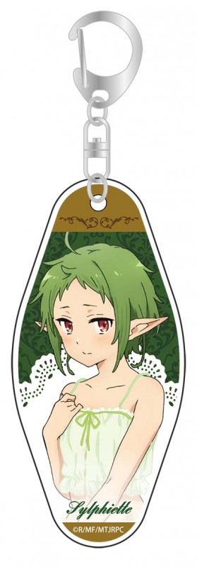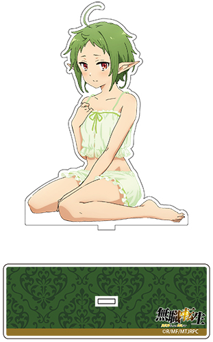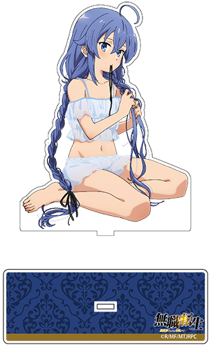 Estos son unos llaveros de acrílico inspirados en las ilustraciones de las chicas de Mushoku Tensei en pijamas junto con el nombre de cada una en la parte de abajo. Estos llaveros tendrán unas dimensiones de 90 x 42 mm cada uno y tendrán un costo de 1.100 yenes (10 dólares aprox.).