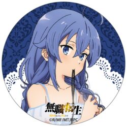 Estos son unos pines de hojalata inspirados en las ilustraciones especiales de Eris Boreas Gryerat, Sylphiette y Roxy Migurdia, con el color de cada chica de fondo y el nombre del anime en la parte de abajo. Estos pines tendrán un costo de 550 yenes (5 dólares aprox.) cada uno.