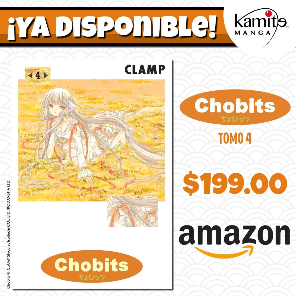Pues Kamite Manga, recientemente ha anunciado por medio de su cuenta oficial de Twitter que ya se encuentra disponible el volumen 4 de Chobits con la siguiente descripción: «En esta nueva entrega, nuevos personajes se unen a la historia, nuestros protagonistas se enfrentan a inquietudes que los llevarán por caminos inesperados». Este volumen tiene un costo de 199 pesos mexicanos, equivalentes a 11.88 dólares y ya está disponible en Amazon. Es de pasta blanda, con 184 páginas y sin duda cuenta con una gran calidad y edición.