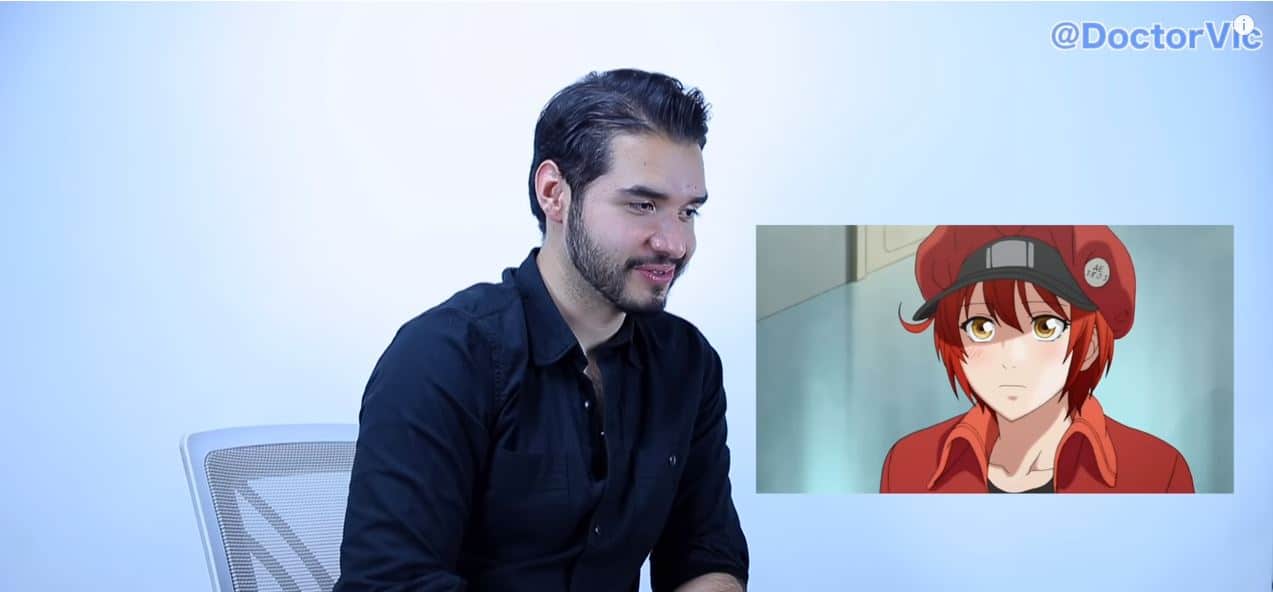 En su segmento de reacciones siempre habรญa hablado exclusivamente de producciones de origen Estadounidense hasta que hace una semana hablo sobre el anime del momento, Hataraku Saibou.