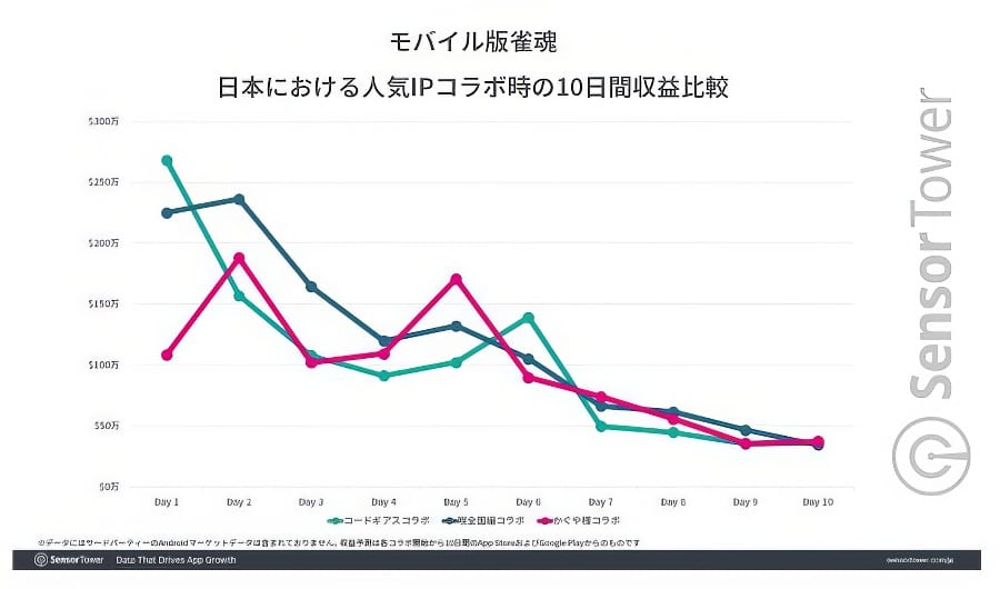 Las mayores ganancias que se recaudaron en un periodo largo, aparte de la colaboración con «Code Geass: Lelouch of the Rebellion» fue con la franquicia de «Saki-National Edition» que se llevó a cabo en enero de 2021 y llego a recaudar $2.3 millones de dólares, a comparación con Code Geass fue una ganancia mucho menor, ya que llego a juntar más de $13 millones de dólares en total.