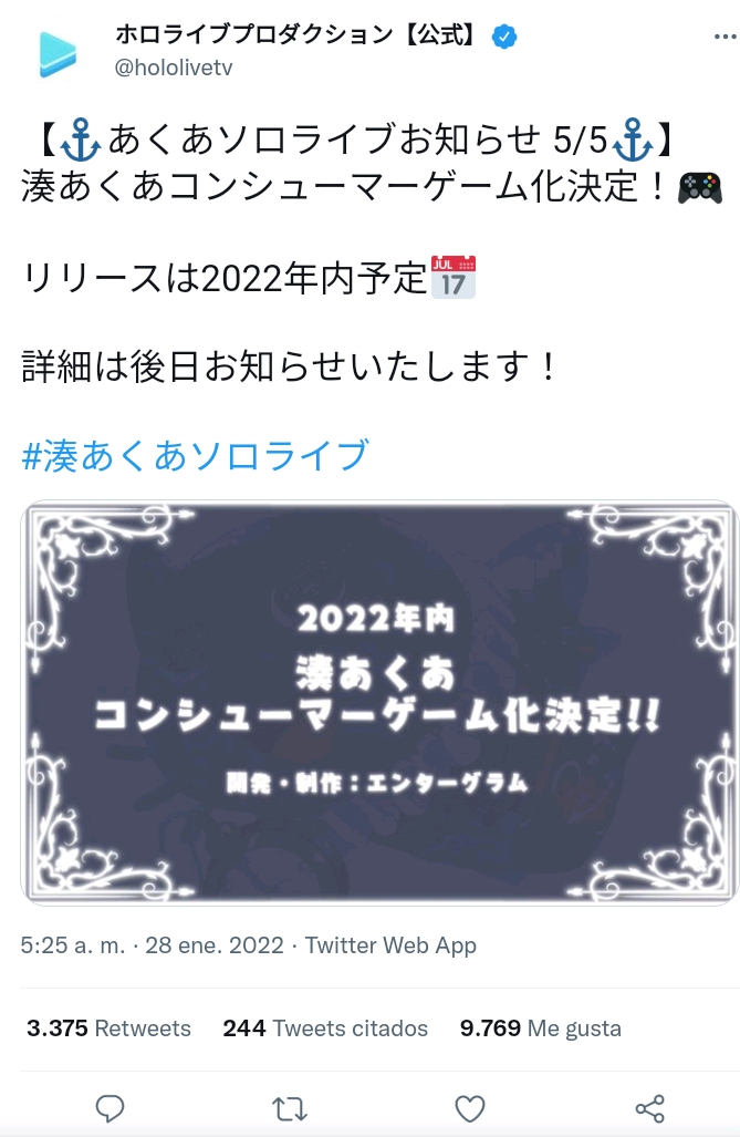 Los fans de Hololive y en si de la Vtuber Minato Aqua se llevaron una tremenda sorpresa cuando después de el musical en vivo Aqua Iro in Wonder☆Land♪, se anunciará un videojuego inspirado en la Vtuber.