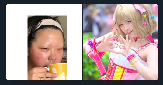 Recientemente se viralizo el hastang #ใฌใคใคใผใฎใชใณใจใชใ, con el que diversas cosplayers japonesas revelaron imรกgenes de cรณmo se veรญan sin maquillaje. Una cosplayer famosa a travรฉs de su usuario @ย itws_a decidiรณ unirse al hashtag y revelar cรณmo se veรญa sin maquillaje.