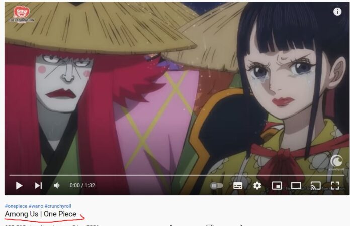 Otro de los videos disponibles en el canal de Youtube que muestra una escena de One Piece tiene como título «Among Us», haciendo referencia al popular videojuego.