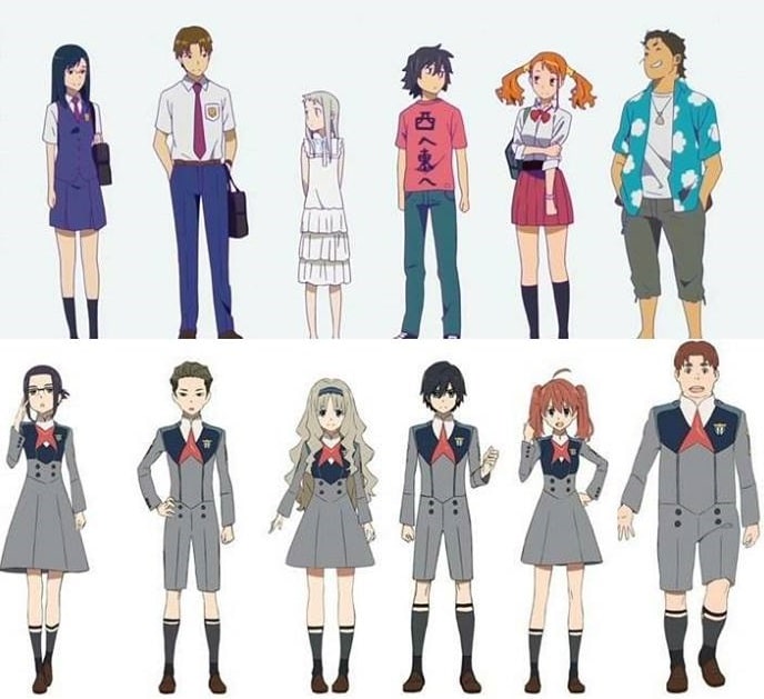 Los personajes del escuadrรณn 13 son parecidos a los de Anohana, representรกndolos tanto a nivel fisico como de forma de ser. Aunque esto tiene una simple explicaciรณn, comparten el mismo diseรฑador de personajes. Es algo casi normal tomar personajes ya creados y modificarlos.