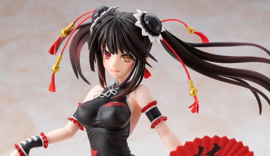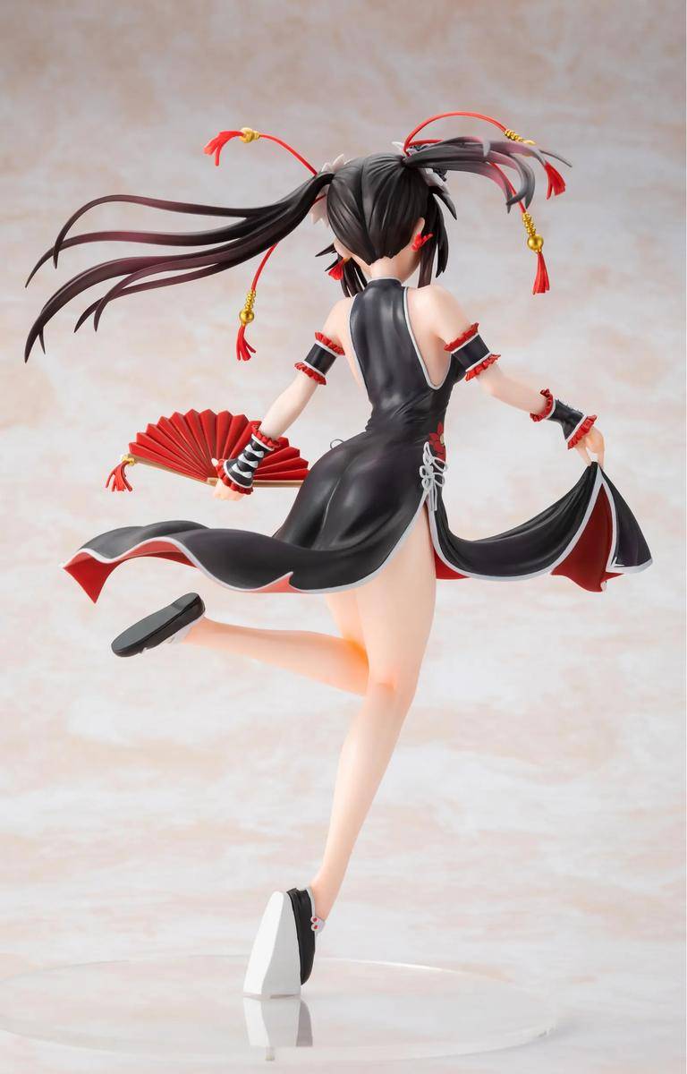 La figura a escala es de Kurumi luciendo un encantador vestido chino de color negro con estampados florales de color rojo, mientras sostiene una abanico de mano, resaltando la esbelta figura y belleza natural del personaje.