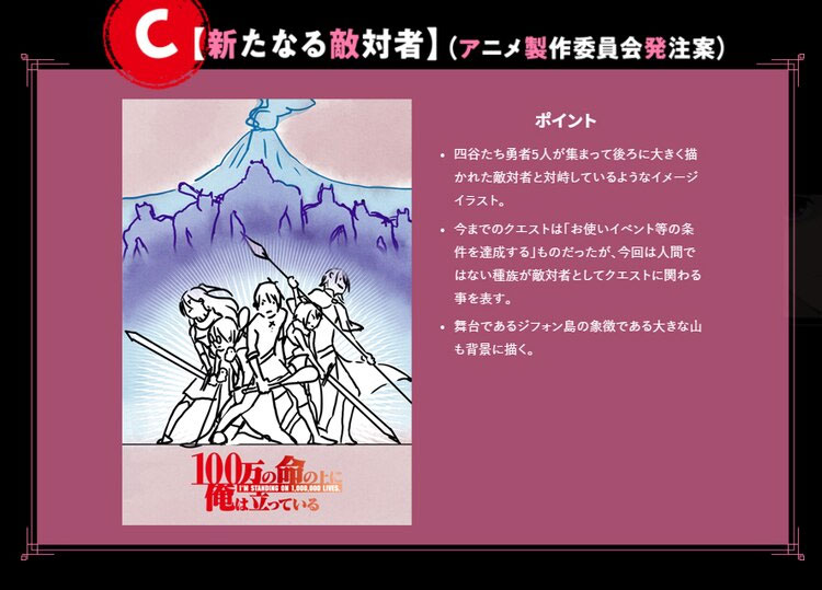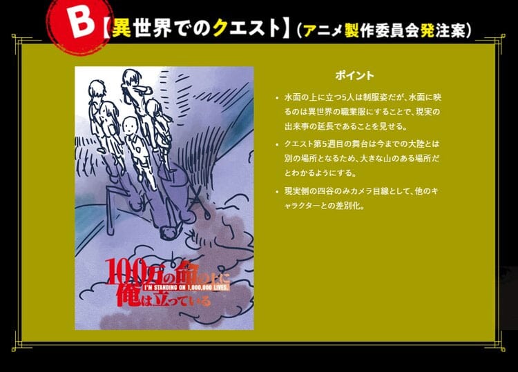 A través de la cuenta de Twitter oficial del anime 100-man no Inochi no Ue ni Ore wa Tatte Iru (I’m Standing on 1,000,000 Lives), se ha abierto una clase de votación, y es que se publicaron cuatro imágenes para que los fans puedan decidir cual sera la elegida para ser la nueva imagen visual de la serie. El concurso aun sigue vigente, y esta terminara el próximo 8 de marzo