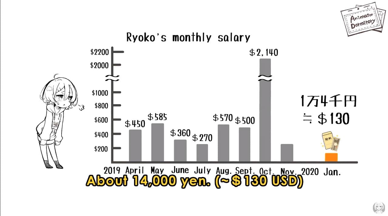 Animator Dormitory Project maneja un canal de YouTube en el cual comparte información acerca de los acontecimientos de su labor en la industria del anime. El último video revelo las ganancias del 2019 sobre una animadora en su actividad con respecto a su primer año en la industria. Los ingresos totales de ese año fueron de 668,000 yenes (US$6,000), que corresponde a un promedio de 74,000 yenes (670 US).